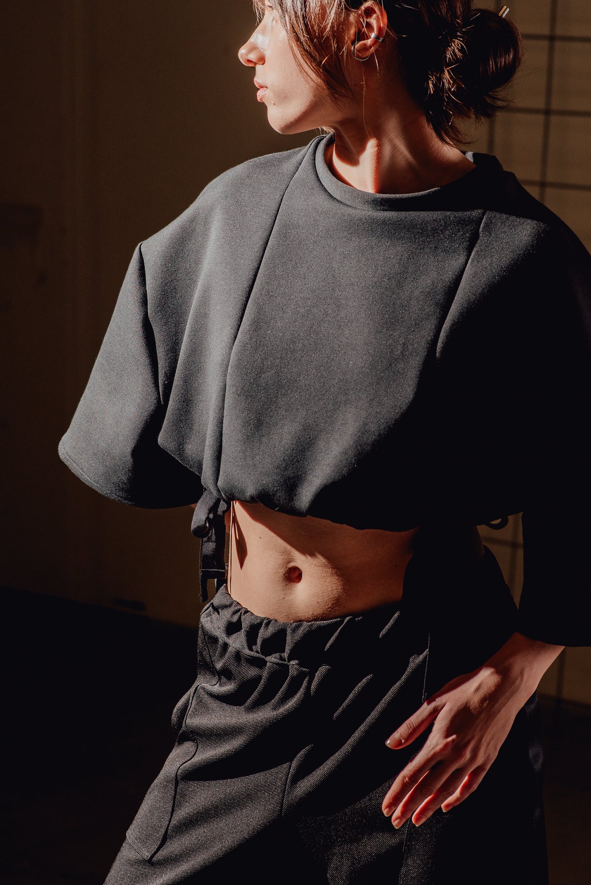 CROPPED T-SHIRT WITH SIDE STRINGS